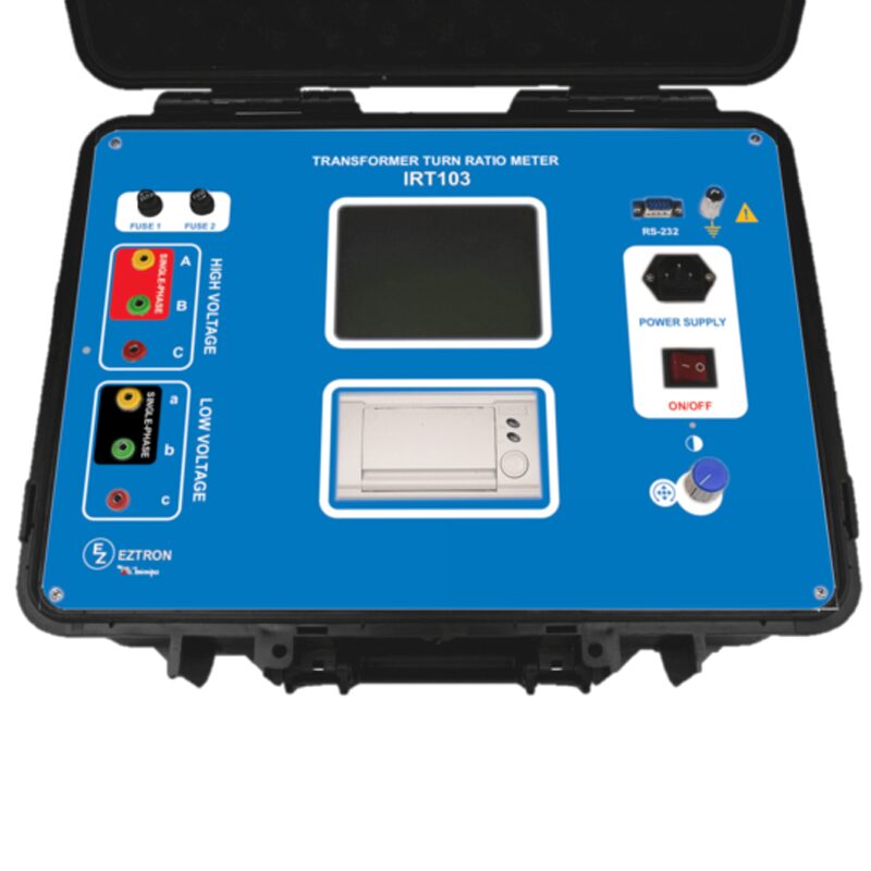 O IRO-103 é um instrumento projetado para medir com precisão as resistências de enrolamento de transformadores, permitindo também a medição de outras resistências dentro da faixa do instrumento, como as de motores. Equipado com componentes de alta qualidade, é ideal para ensaios em campo, com baixa sensibilidade a campos eletromagnéticos de subestações, o que o torna robusto para ambientes industriais. Este equipamento portátil pode ser alimentado tanto pela rede elétrica quanto por uma bateria externa de 12V, proporcionando versatilidade para uso em campo, laboratório ou linha de produção.