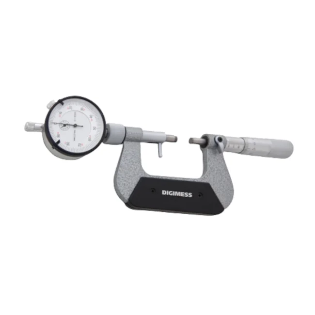 O micrômetro externo com relógio comparador é ideal para comparação de peças seriadas e inspeções do tipo passa/não-passa, proporcionando rapidez, praticidade e alta confiabilidade nos processos de medição. Versátil, pode ser utilizado com qualquer tipo de relógio comparador e está disponível em diferentes capacidades, de 0–25 mm até 150–175 mm, atendendo às necessidades de produção e controle de qualidade em diversos setores industriais.