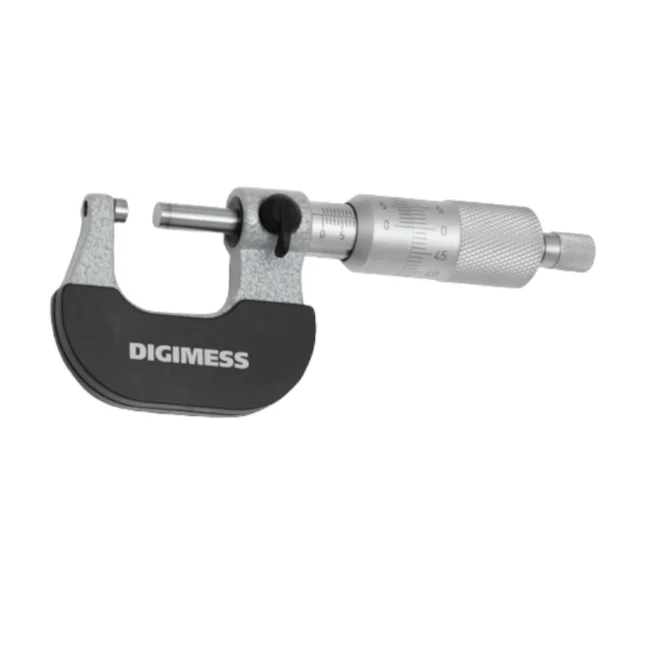 Construído com arco em aço forjado pintado e esmaltado, o equipamento alia robustez e longa vida útil. O tambor, bainha e catraca em metal cromado fosco oferecem durabilidade e facilidade de manuseio, enquanto o fuso em aço temperado de Ø6,5 mm proporciona resistência contra desgaste. Suas faces de medição em metal duro micro lapidadas asseguram leituras consistentes e precisão elevada. O tambor milesimal livre de paralaxe elimina distorções visuais, garantindo leituras exatas até 0,001 mm. A catraca de pressão na extremidade do tambor padroniza a força aplicada, e a alavanca de fixação do fuso confere estabilidade durante o ensaio. Além disso, os protetores termoisolantes minimizam variações dimensionais causadas pela temperatura do operador. O conjunto acompanha haste padrão para zeragem (a partir de 25 mm) e chave para ajuste da bainha, oferecendo praticidade e confiabilidade em ambientes de laboratório e produção.