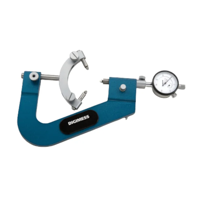 Com arco em aço forjado pintado e esmaltado, o instrumento oferece robustez e longa vida útil. O batente móvel retrátil com curso de 3 mm permite ajustes rápidos e precisos, assegurando versatilidade durante as medições. O conjunto acompanha relógio comparador com graduação de 0,01 mm, mostrador bidirecionado 30-0-30, marcadores de tolerância e trava do aro, proporcionando leitura fácil e confiável. Além disso, é fornecido com um jogo completo de cinco trios de pontas apalpadoras de 60°, cobrindo diferentes faixas de roscas, o que torna o equipamento adaptável a diversas necessidades de inspeção.